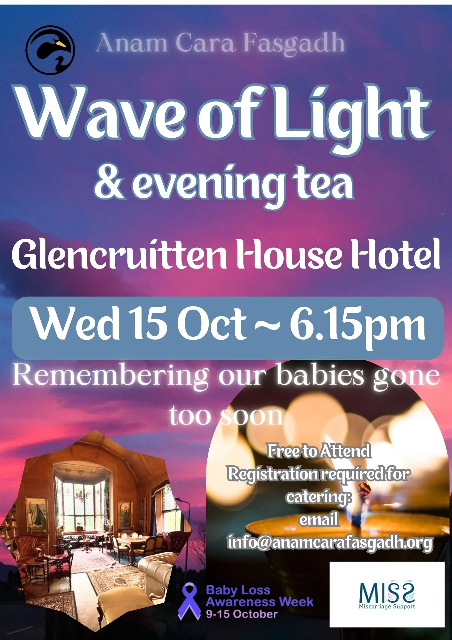 This year, we are honoured once again to gather with bereaved families for the Oban Wave of Light and Evening Tea, in partnership with Miscarriage Support. This year’s service will be held in the beautiful library at the historic Glencruitten House Hotel.