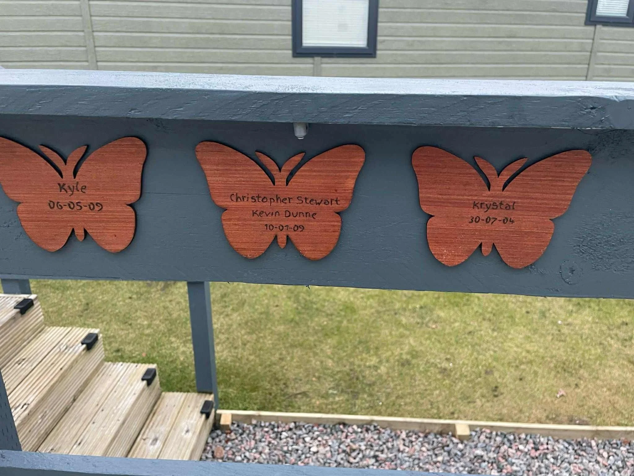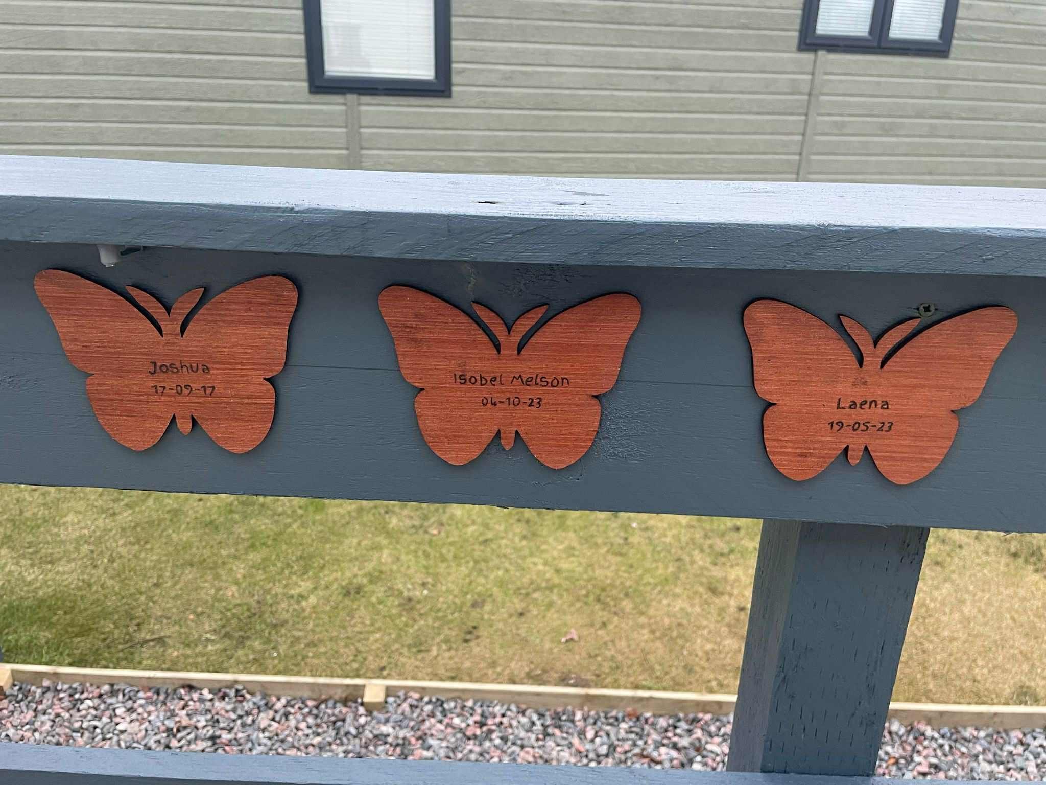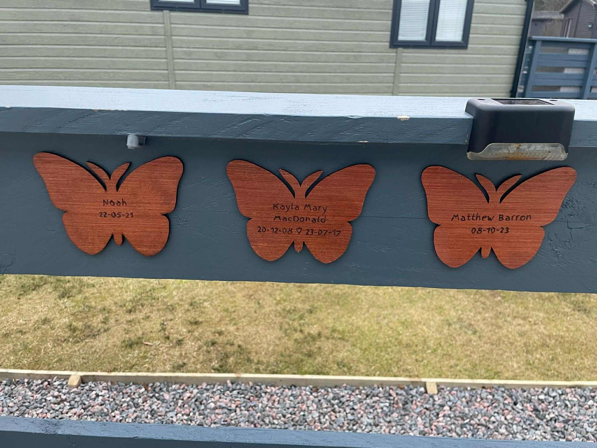 In 2025 we chose to adorn our decking with butterflies, each bearing the names and dates significant to our children. In 2026, with Poppy’s Place moving, and due to our butterflies suffering a lot of weathering, we realised we were going to have to refurbish them. Through our incredible partnership with Oban High School, students are now working hard on refurbishing the 70 we had already placed, and engrave the 19 new ones.